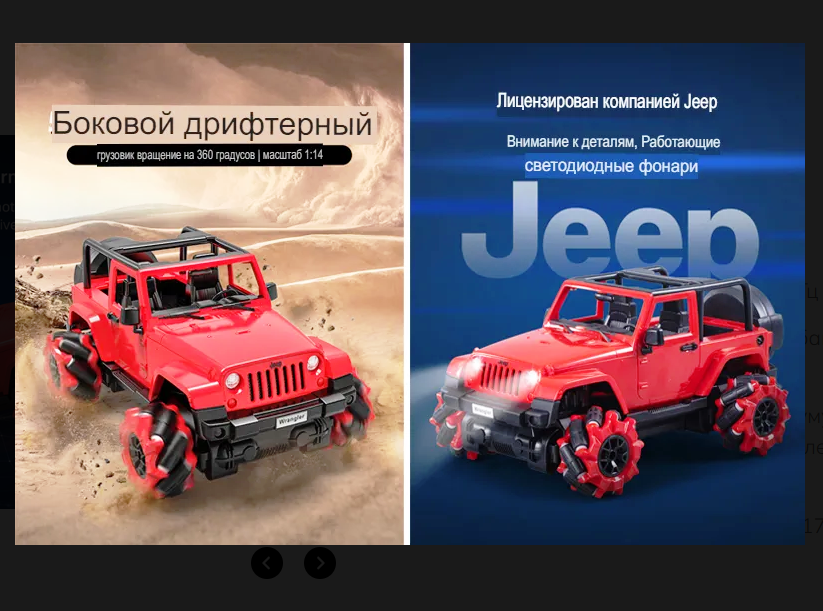 Радиоуправляем джип, программируемый, свет, движение боком 4WD 2.4G 1|16 RTR интересное: