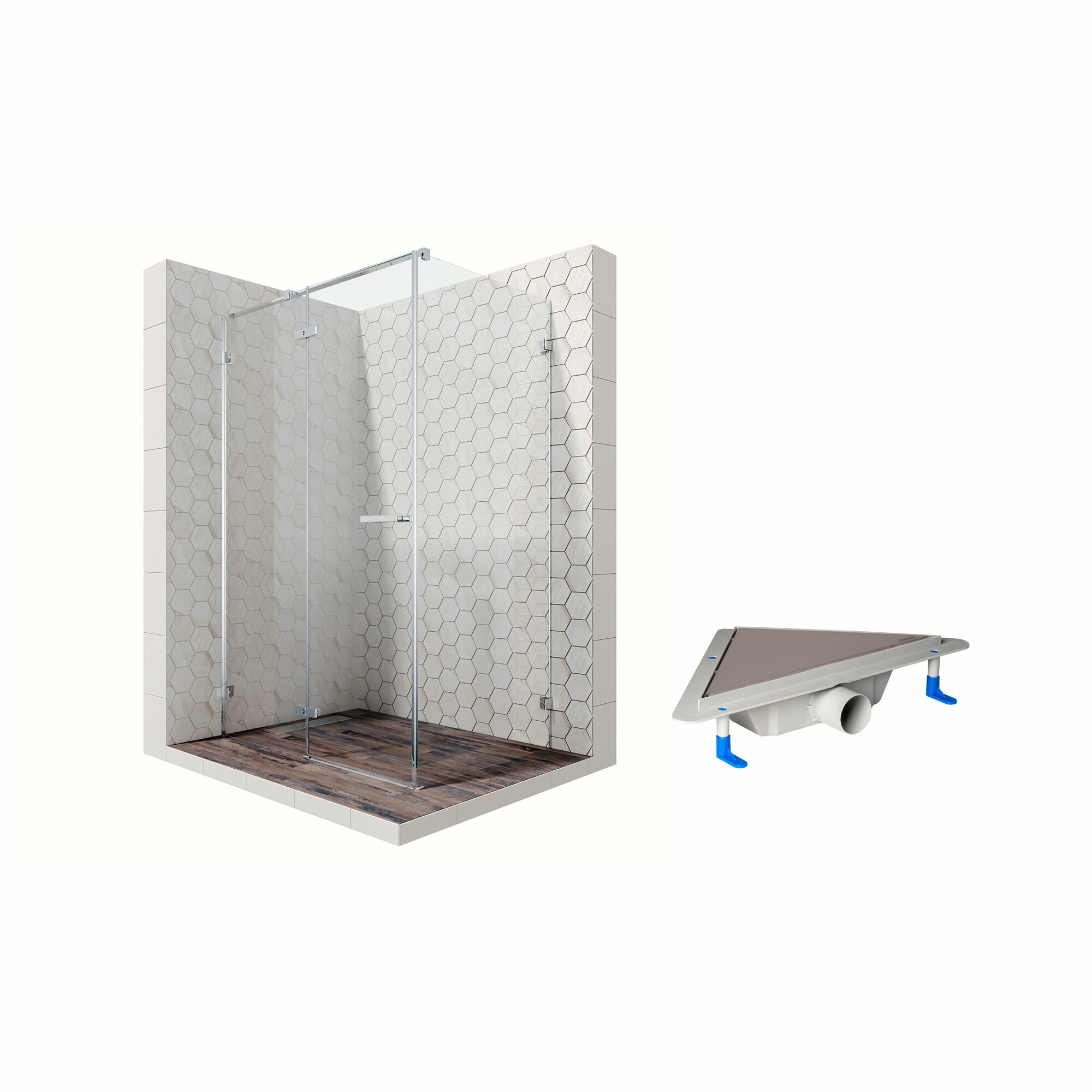 Комплект прямоугольного душевого ограждения с угловым трапом Ambassador Abner 10011103R-ST4, с EasyClean, 120 х 80 см