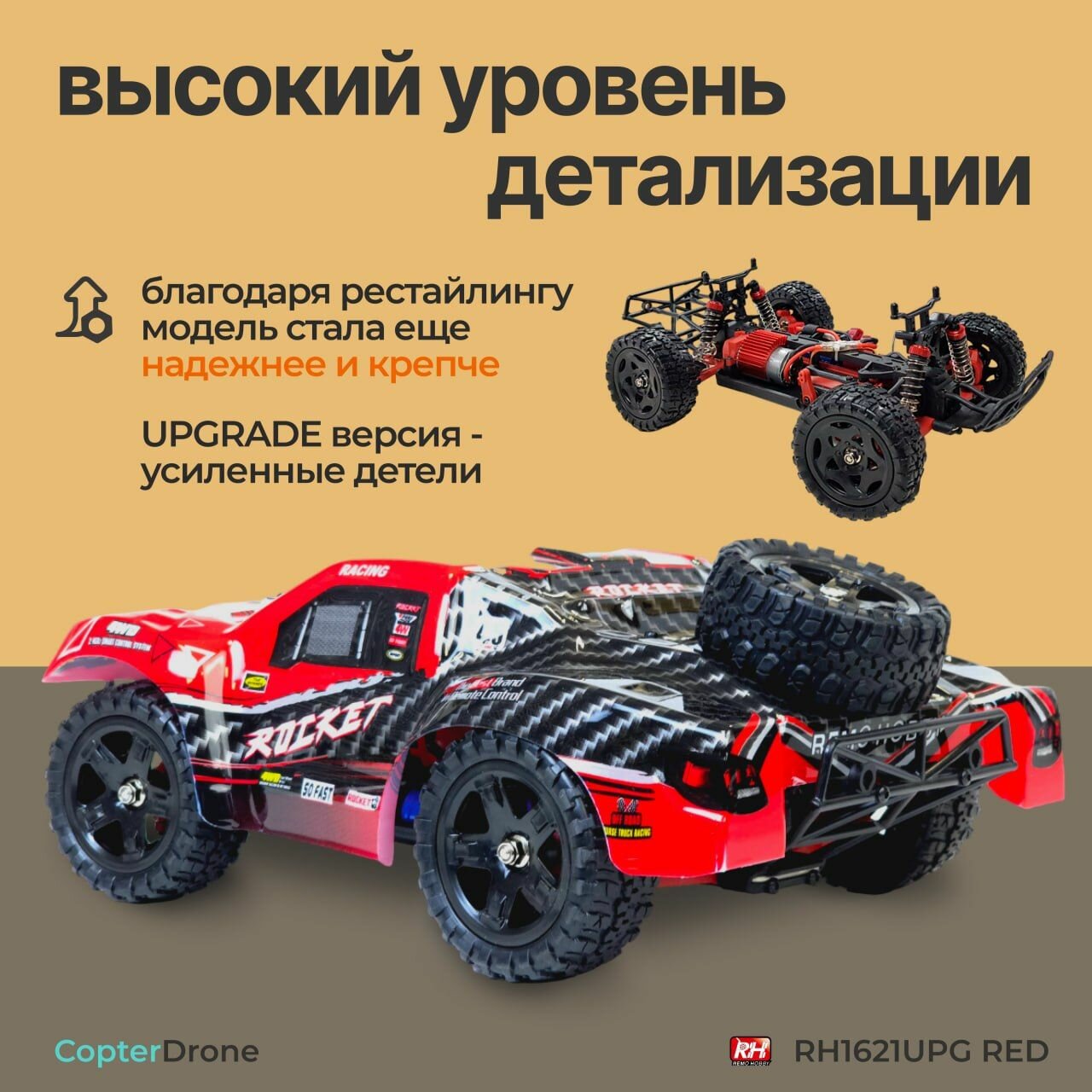 Радиоуправляемый шорт-корс Remo Hobby Rocket UPGRADE 4WD 2.4G 1:16 RTR RH1621UPG-RED / машина джип на пульте управления