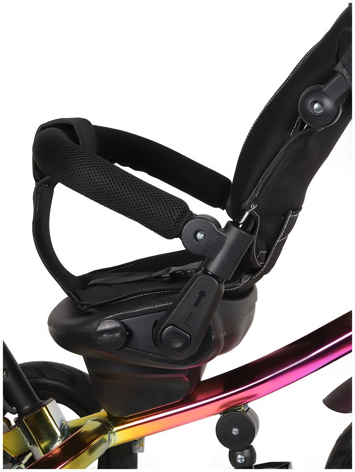 Велосипел детский трехколесный ТМ "CITY-RIDE LUNAR". Пятиугольная рама, складная крыша D600, фара свет/звук, подножки, надувные колеса 12"/10", ножной тормоз, поворот сиденья на 360гр. Цвет черный, хамелеон