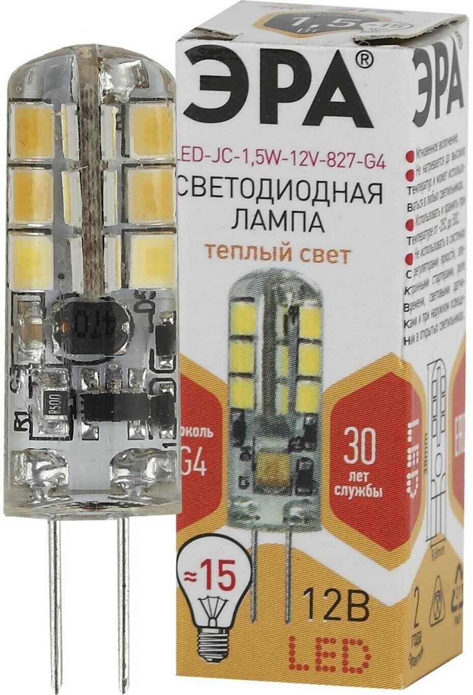 ЭРА LED JC-1,5W-12V-827-G4 (диод, капсула, 1,5Вт, тепл, G4)