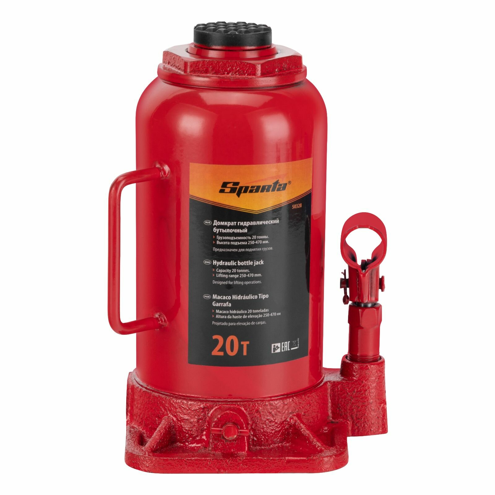 Домкрат гидравлический бутылочный, 20 т, h подъема 250-470 мм Sparta 50328