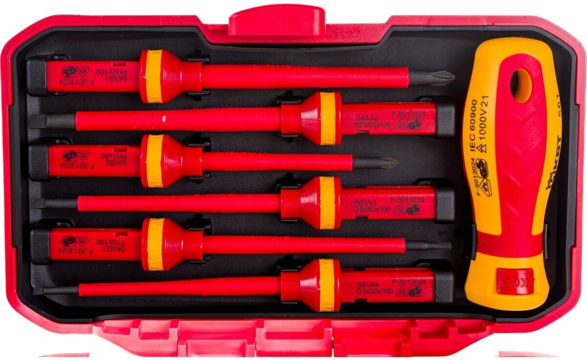 Набор диэлектрических отверток с ручкой-держателем и тестр напряжения НИО-4412 "Профи" VDE 1000В КВТ 78615