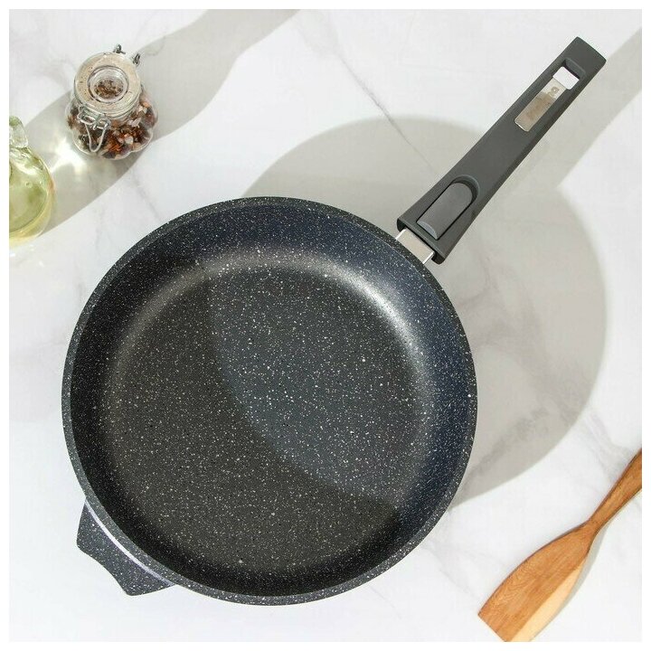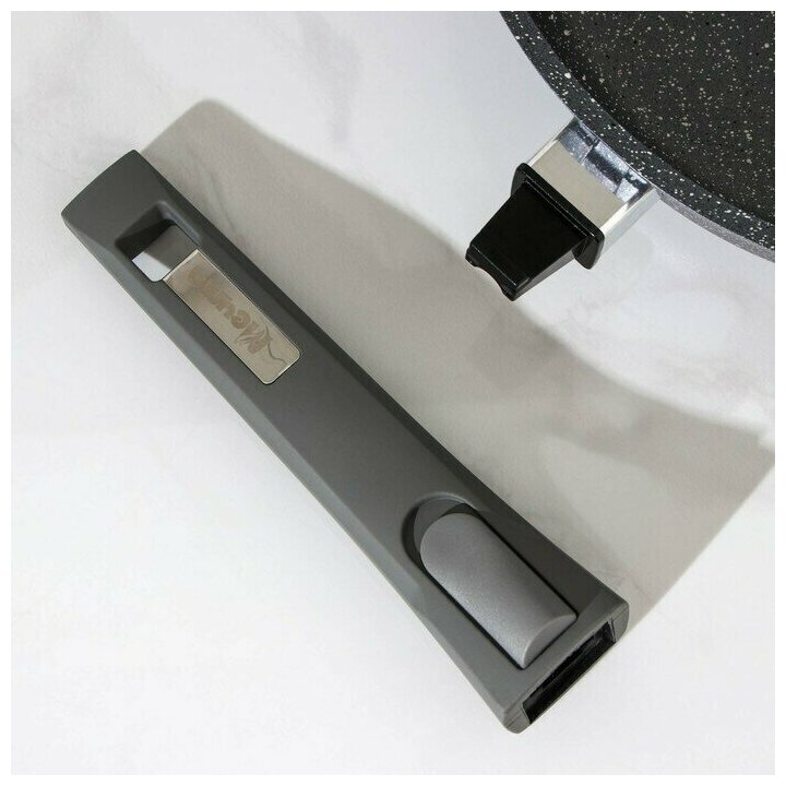 Сковорода Гранит, d-26 см, антипригарное покрытие, съёмная ручка, стеклянная крышка, цвет серый интересное: