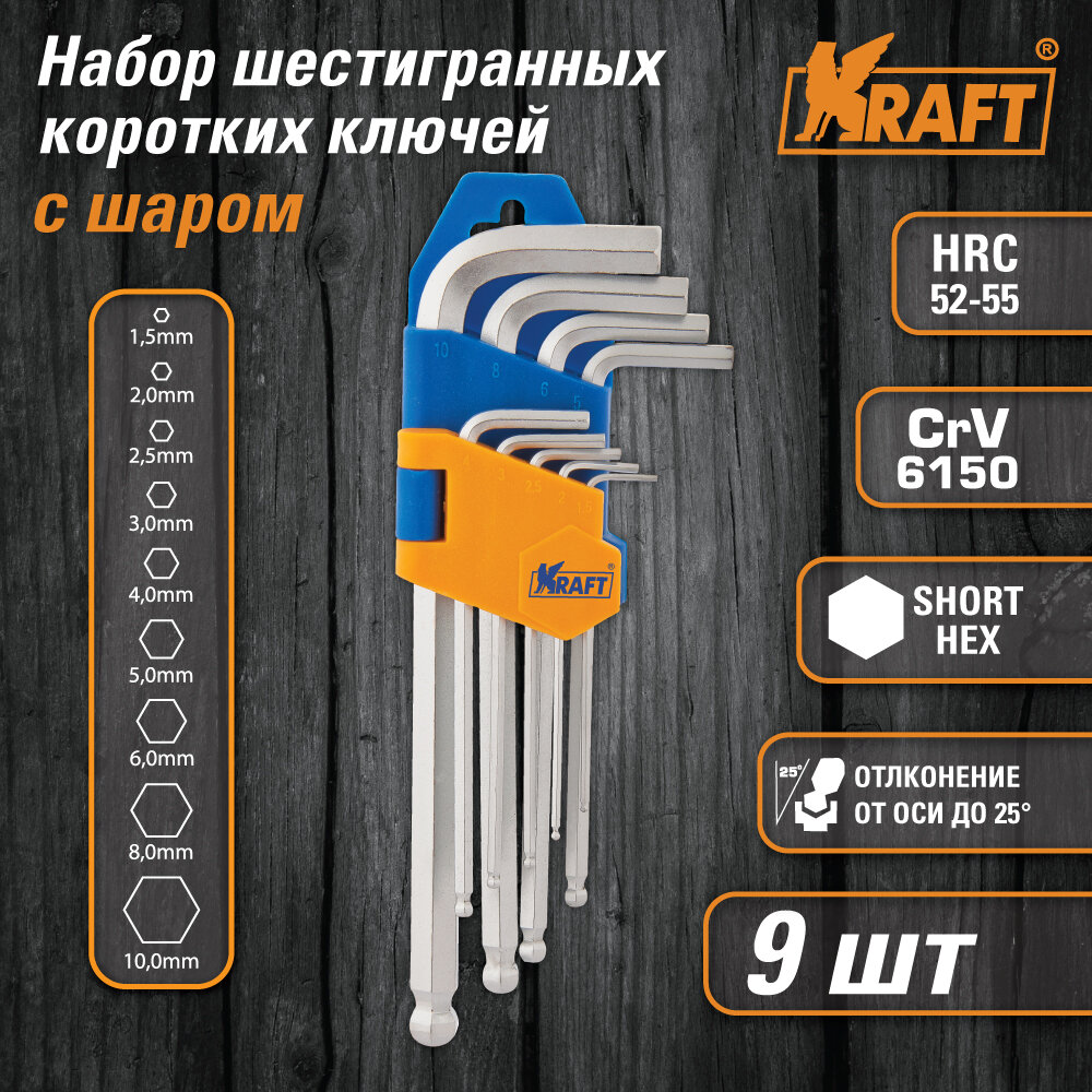 Набор шестигран. (9 предм.) с шаром корот. KRAFT KT 700564