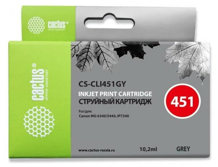 Картридж струйный Cactus CS-CLI451GY серый (10.2мл) для Canon MG6340/5440/IP7240