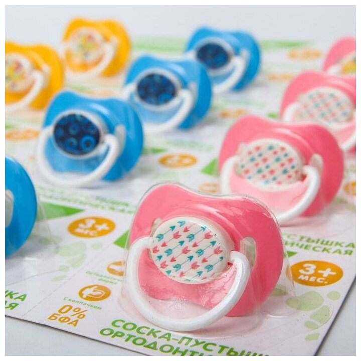 Пустышка ортодонтическая с колпачком, от 3 мес., на блистере, цвет микс интересное: