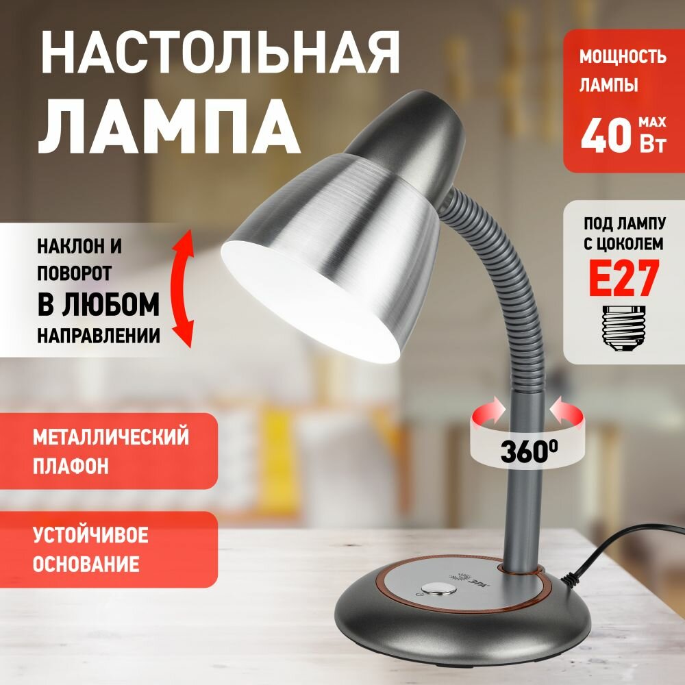 Лампа офисная ЭРА N-115-E27-40W-GY, E27, 40 Вт, цвет арматуры: серый, цвет плафона/абажура: серебристый