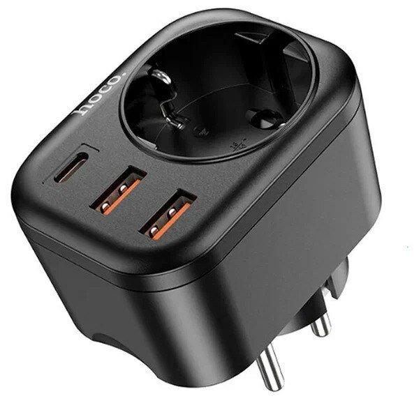 Сетевой фильтр Hoco NS3 1 Socket + PD 20W + 2xUSB QC3.0 18W Black 6931474766168