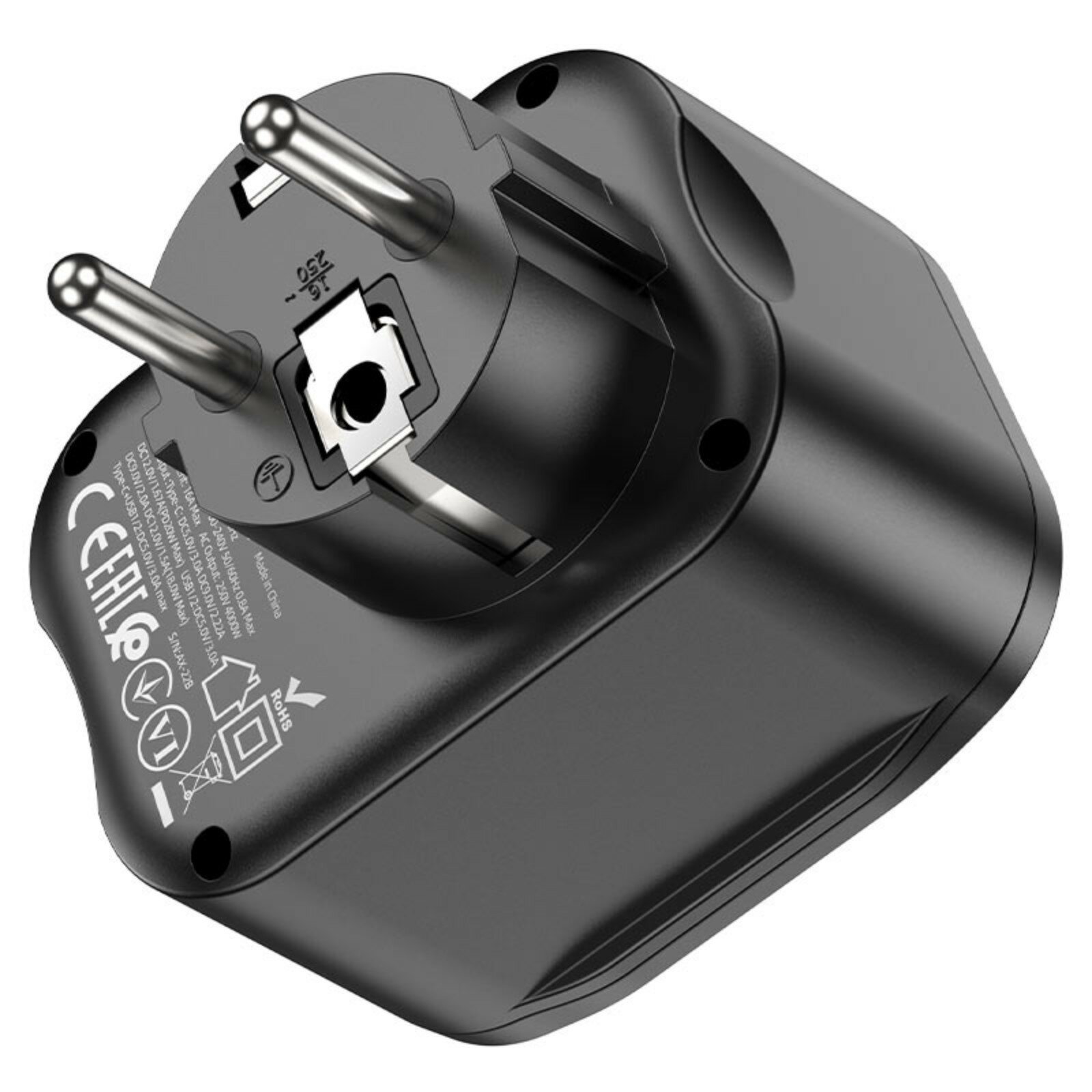 Переходник для розетки+2USB+1PD, NS3, HOCO, черный