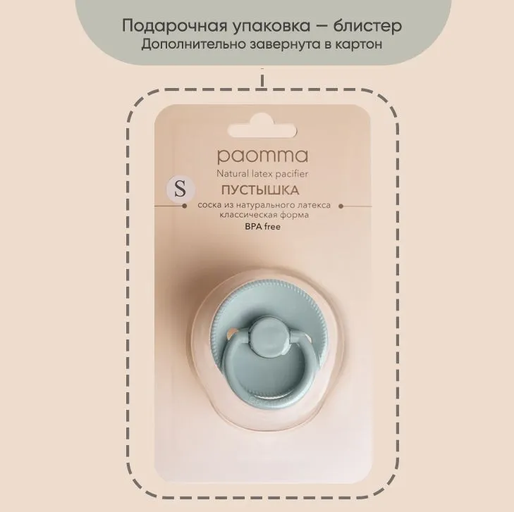 Пустышка Paomma с соской из натурального латекса, S (0-6 мес), Clay