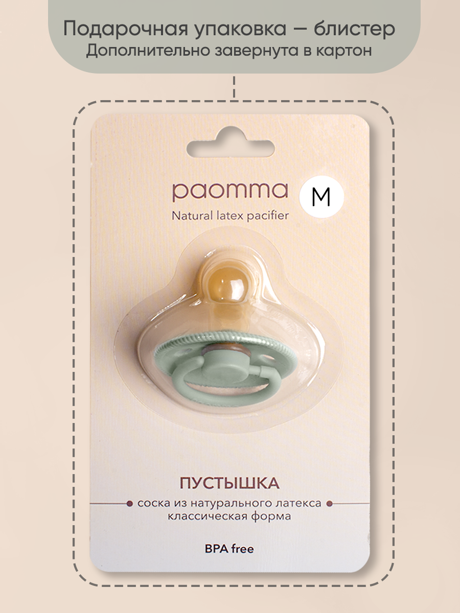 Пустышка Paomma с соской из натурального латекса, S (6-18 мес), Sage