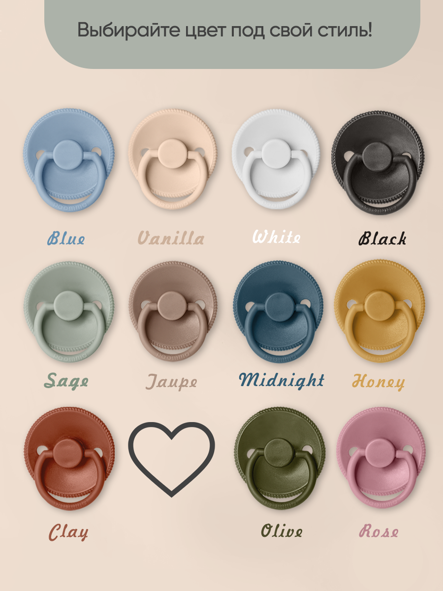 Пустышка Paomma с соской из натурального латекса, S (6-18 мес), Clay