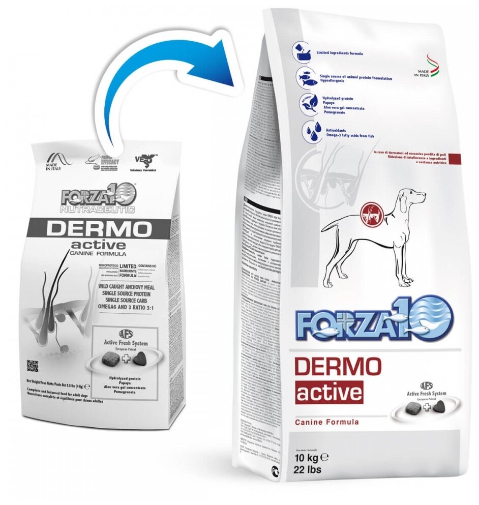 FORZA10 DOG DERMO ACTIVE для взрослых собак всех пород при заболеваниях кожи (10 кг)