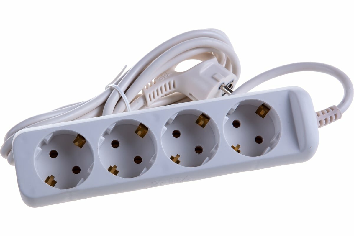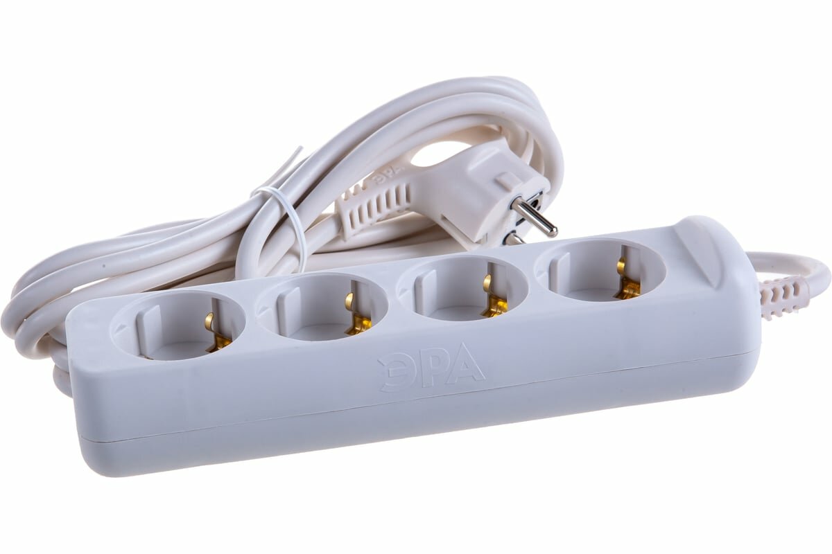 Удлинитель 4гн без З/К 5м белый 10А ПВС 2х1 U-4-5m-2x1 ЭРА