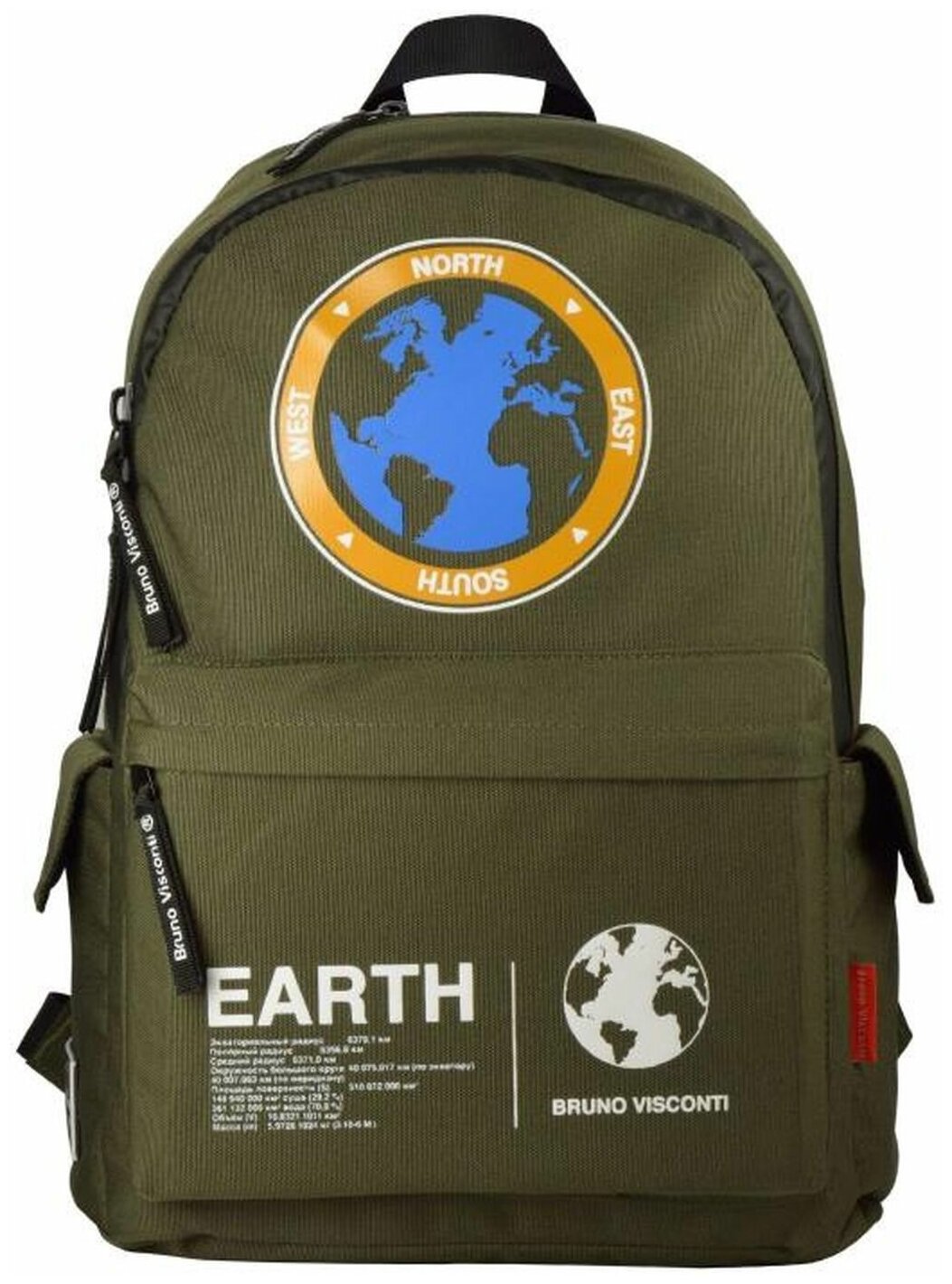 Рюкзак BrunoVisconti, молодежный , темно-зеленый , «планета земля», Арт. 12-003-104/11 интересное:
