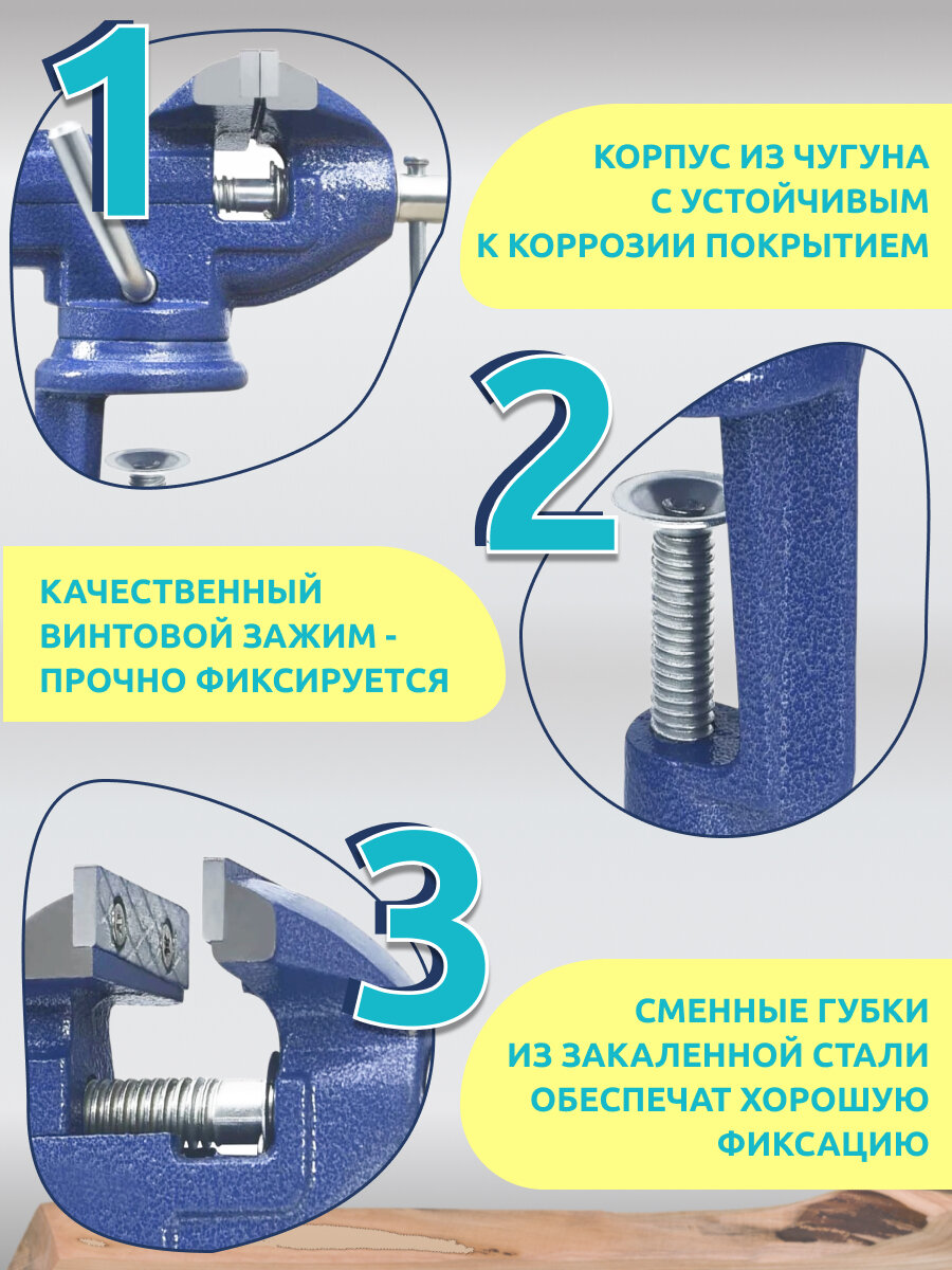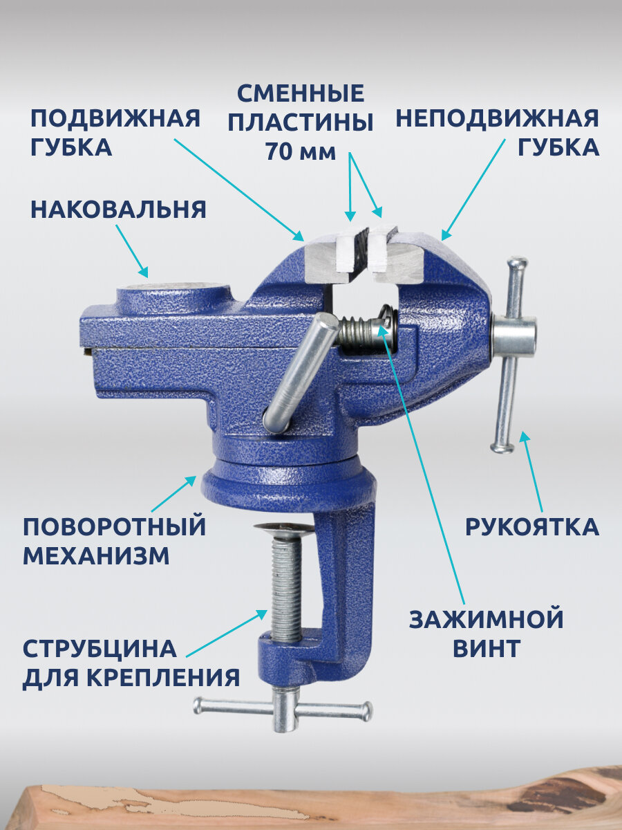 Тиски слесарные настольные поворотные с наковальней 70 мм, рабочая высота 100 мм синие интересное: