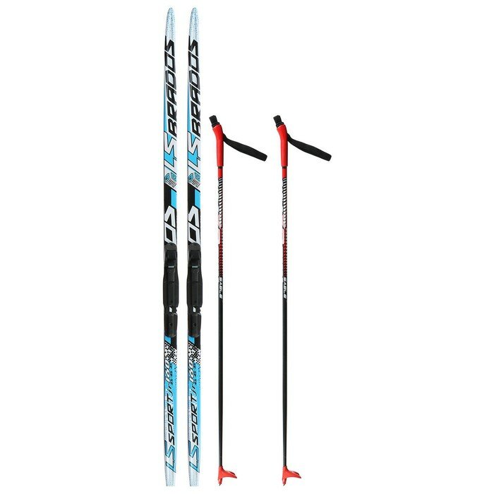 Комплект лыжный: пластиковые лыжи 160 см без насечек, стеклопластиковые палки 120 см, крепления SNS