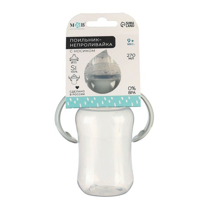 Mum&Baby Поильник - непроливайка с силиконовым носиком, 270 мл, серый