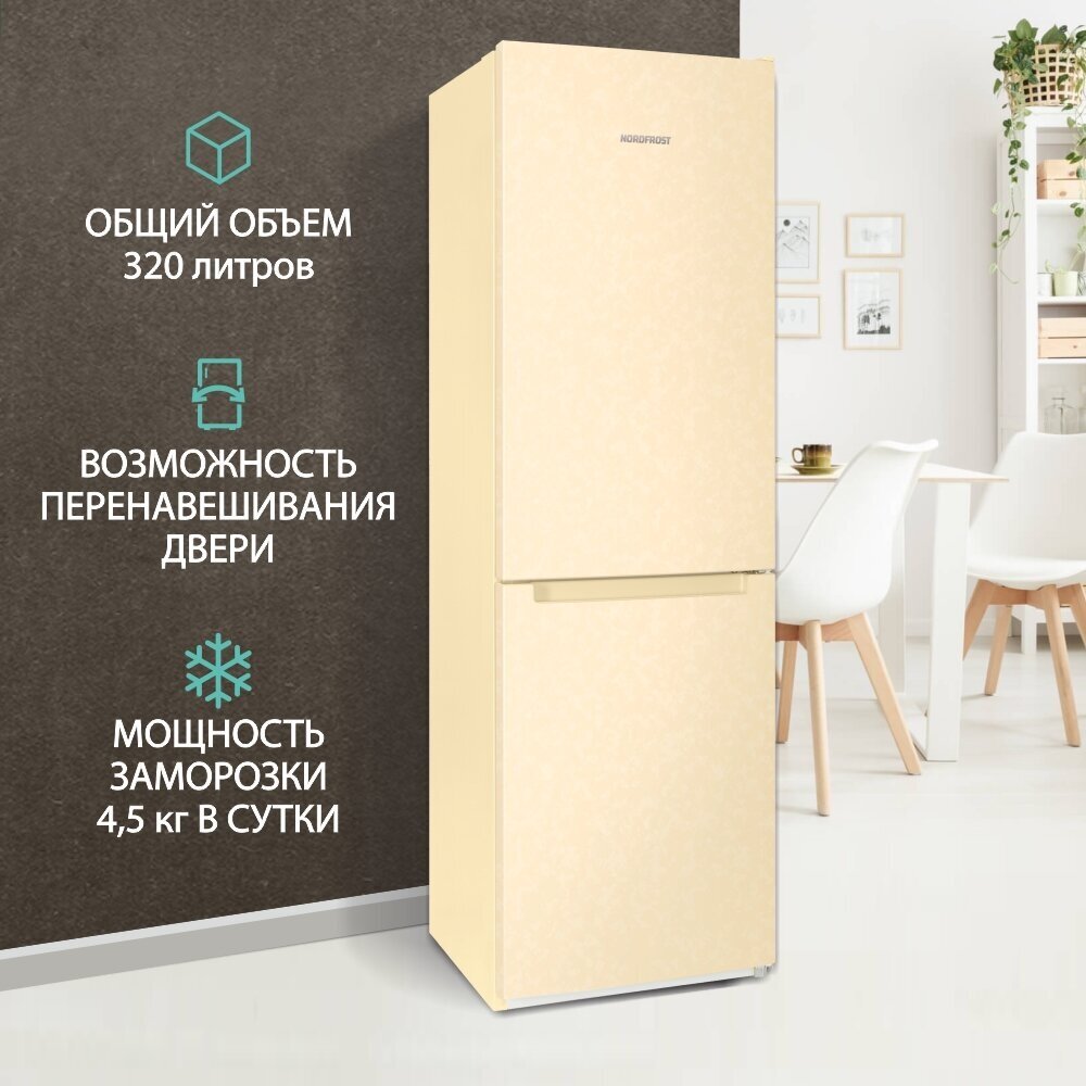 Холодильник NORDFROST NRB 152 Me двухкамерный, 320 л объем, мрамор бежевый