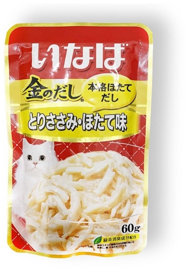 Влажный корм для кошек Inaba Kinnodashi Куриное филе со вкусом морского гребешка 60г