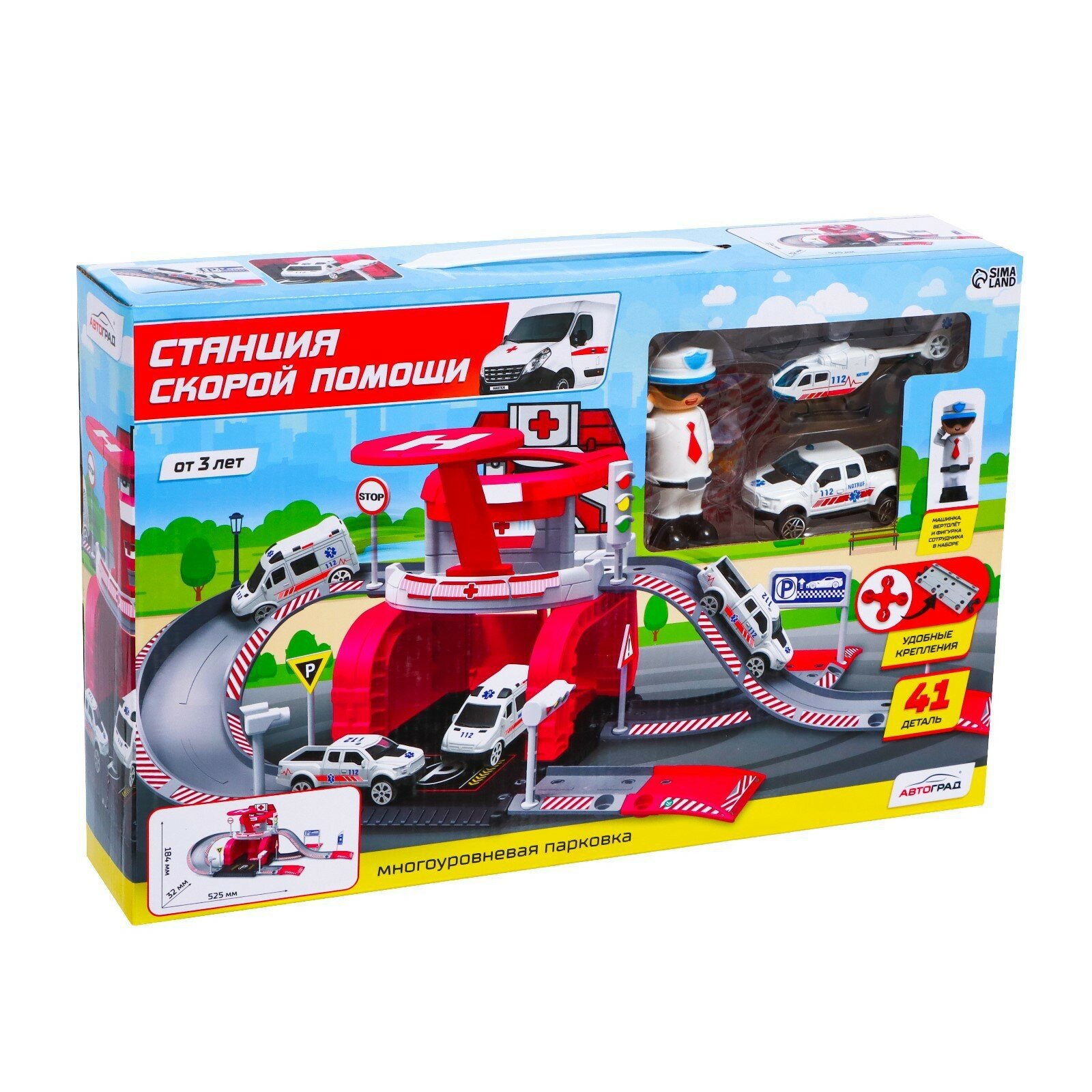 Автоград Парковка «Станция скорой помощи», с металлическими машинкой и вертолётом