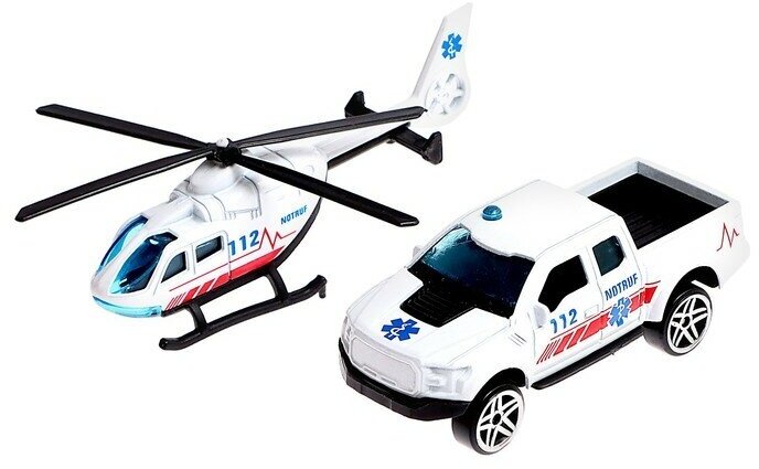 Парковка «Станция скорой помощи», с металлическими машинкой и вертолётом