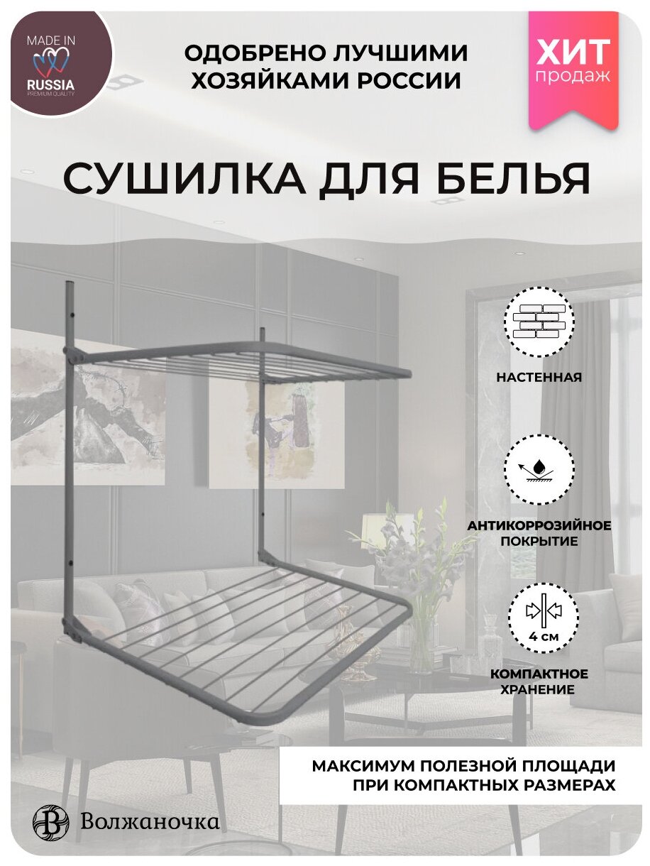 Сушилка для белья волжаночка настенная 2-х ярусная 13,2м серебристый металлик СВ-002 интересное: