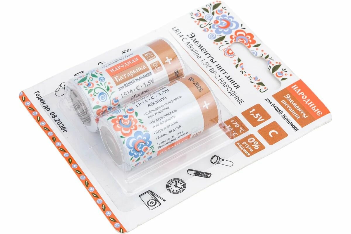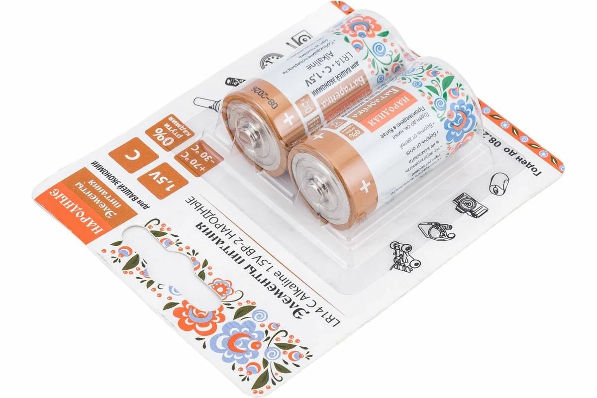 Элемент питания LR14 C Alkaline 1,5V BP-2 Народный (Упаковка 2шт) SQ1702-0014