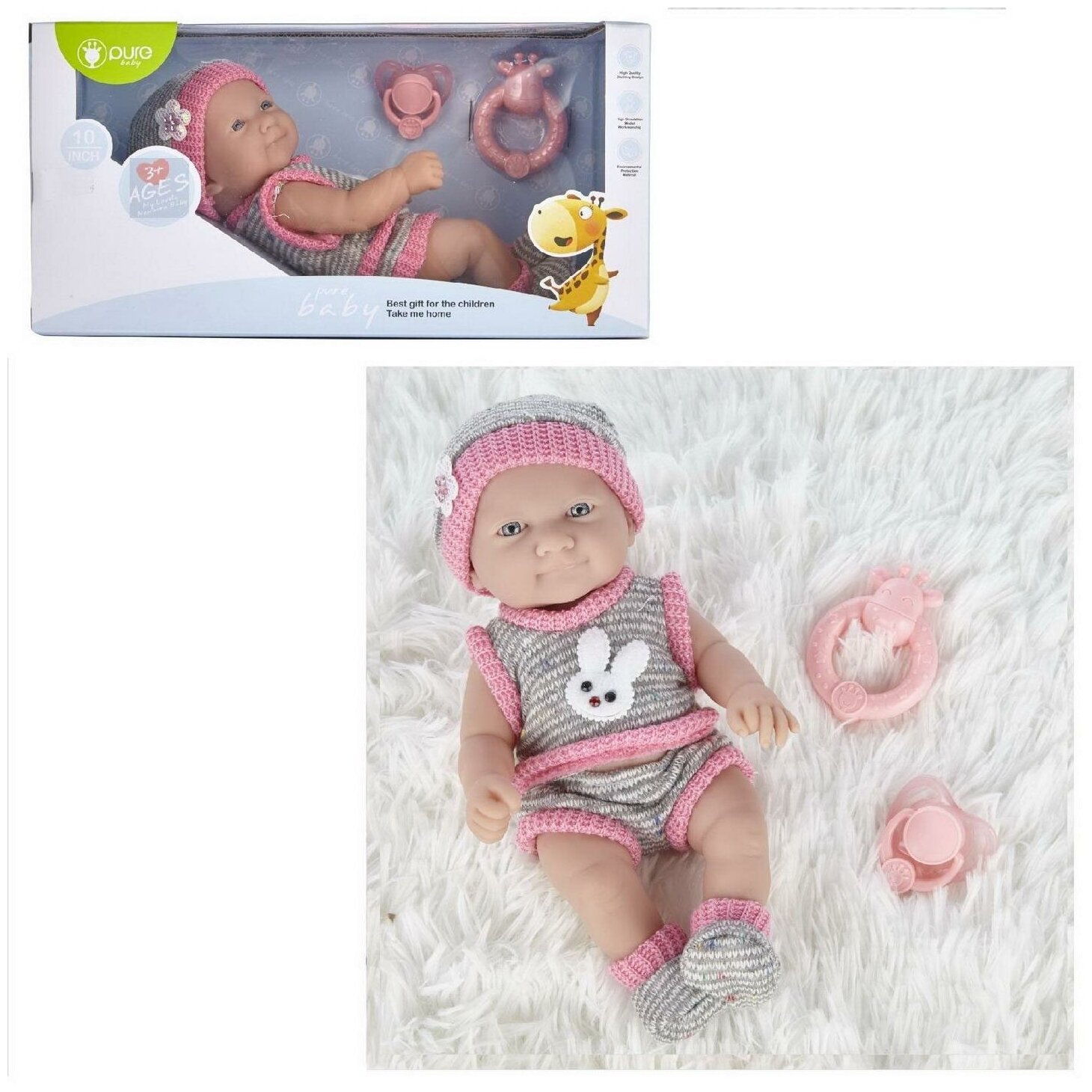 Пупс Pure Baby, 30см, в серых кофточке, шортиках, шапочке и носочках, с аксессуарами, в коробке - Junfa Toys [WJ-B9965]