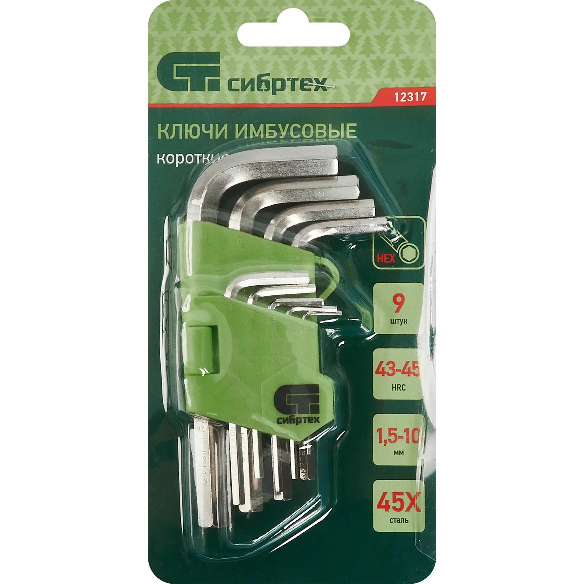 Набор шестигранных ключей СИБРТЕХ 12317, 1,5–10 мм, 45x, закаленные, 9 шт., короткие, никелированные