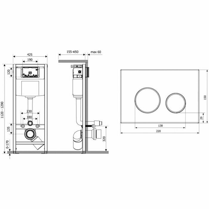 | Комплектация | звукоизоляция / кнопка смыва / рама / сливной бачок |