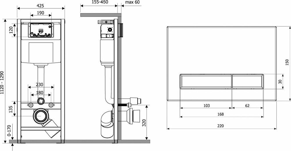 | Комплектация | звукоизоляция / кнопка смыва / рама / сливной бачок |