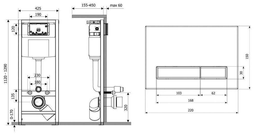 | Комплектация | звукоизоляция / кнопка смыва / рама / сливной бачок |