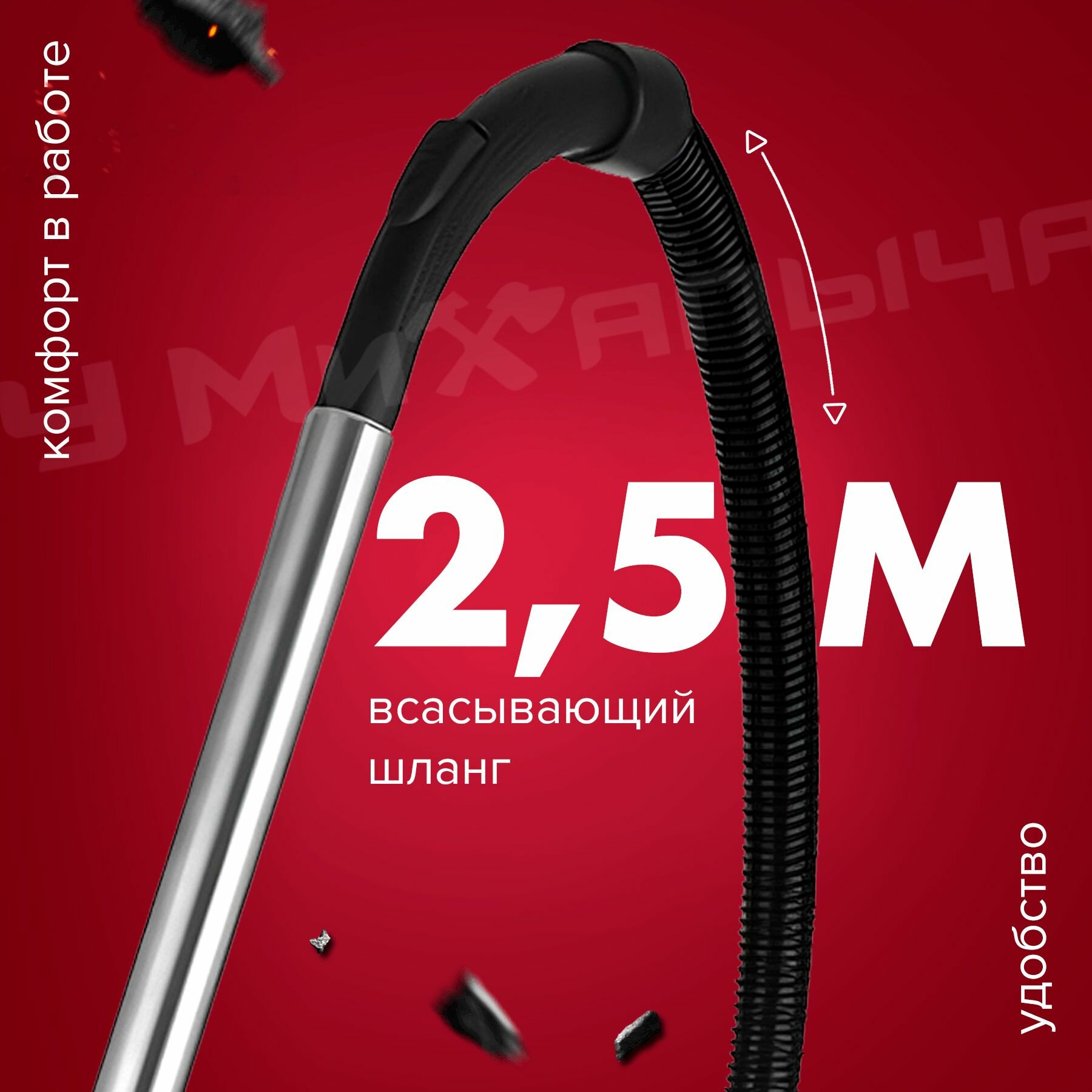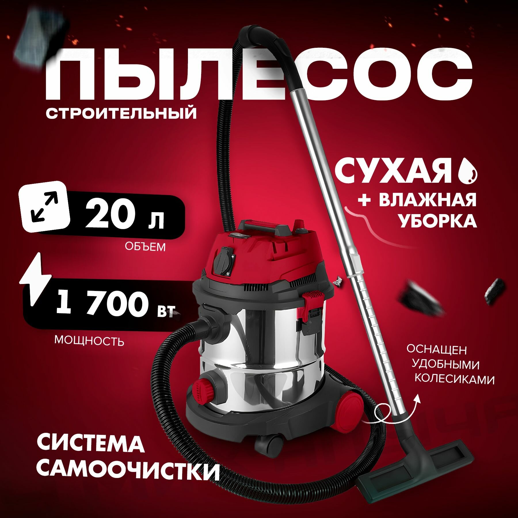Профессиональный пылесос Энергомаш Гарант ПП1-20СФ, 1700 Вт, серебристый/красный/черный