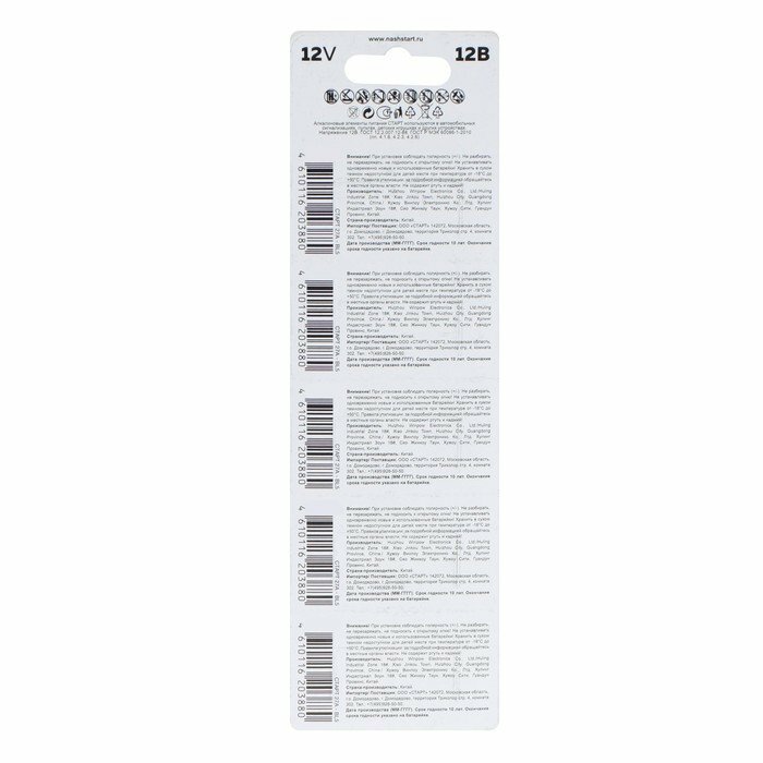 Ниже Вы можете прочитать отзывы на Батарейки старт 27А (MN27), 5 шт., ознакомится с подробными характеристиками, посмотреть интересные обзоры и фотографии на Батарейки старт 27А (MN27), 5 шт..