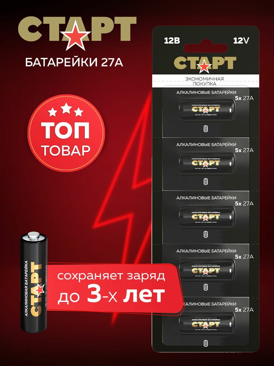 Батарейка старт (27А, 5 шт.) (4610116203880)