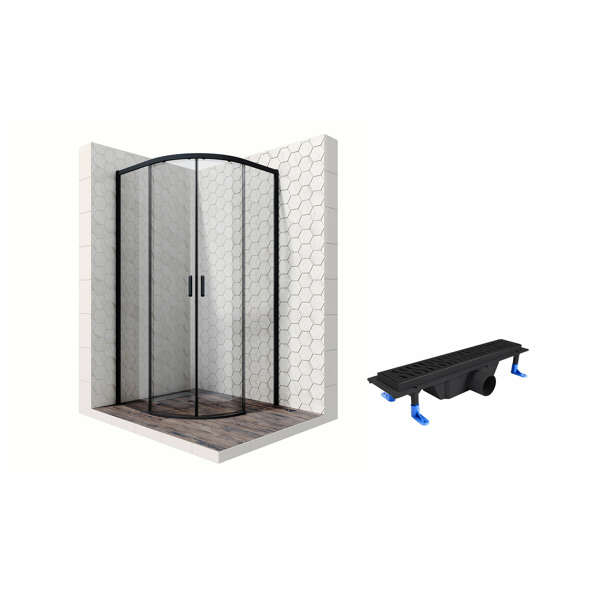 Комплект полукруглого душевого ограждения с линейным трапом Ambassador Queen 11011102-ST2, с EasyClean, 100 х 100 см