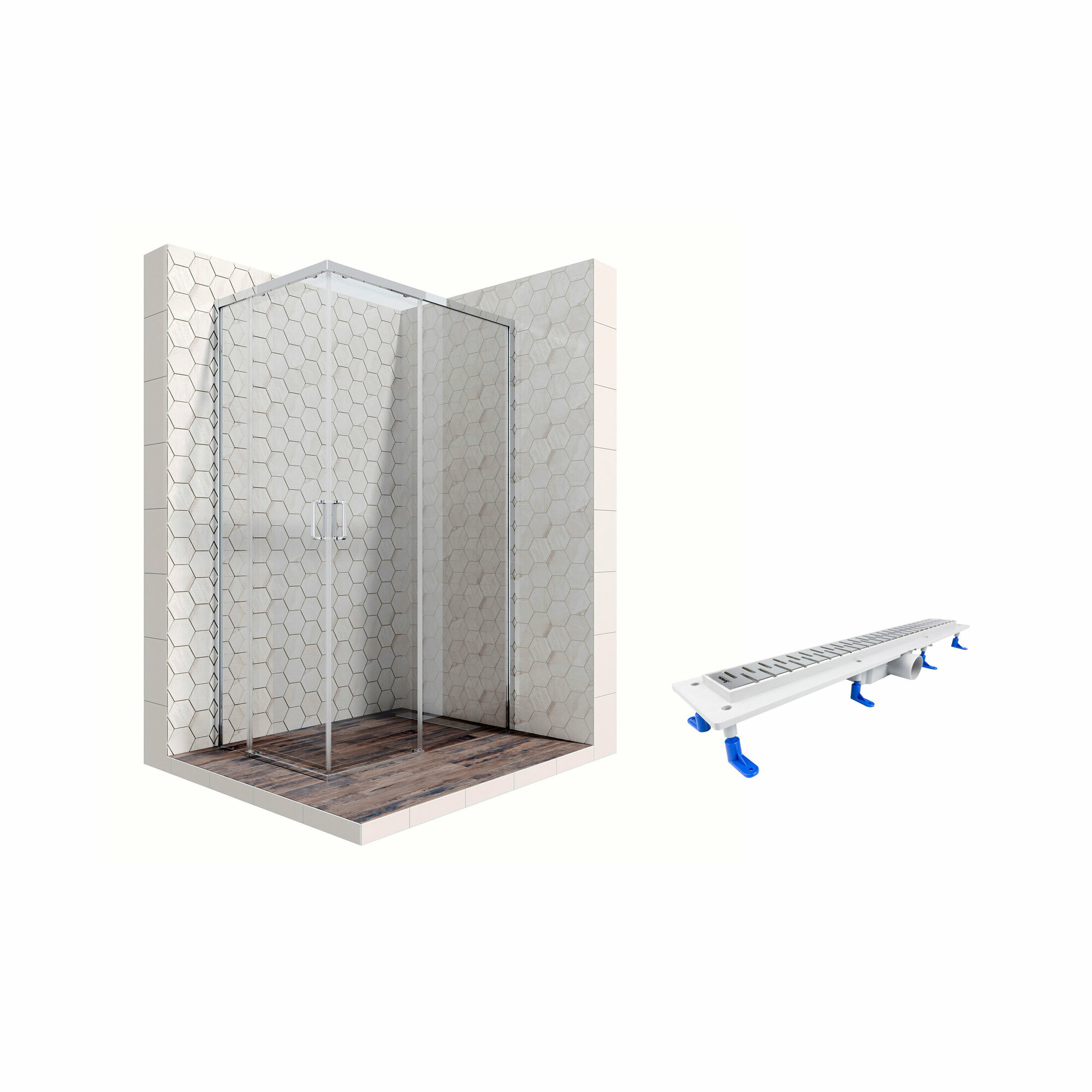 Комплект прямоугольного душевого ограждения с линейным трапом Ambassador Queen 11011106R-ST2, с EasyClean, 120 х 80 см