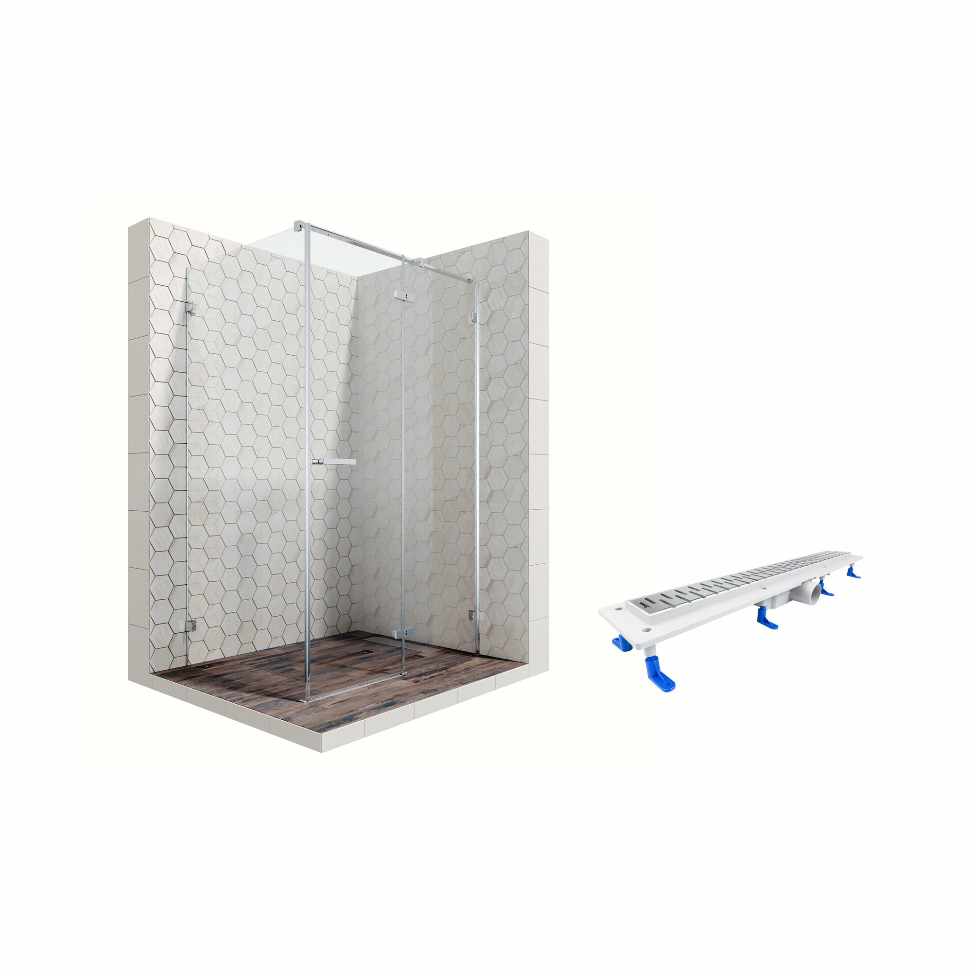 Комплект прямоугольного душевого ограждения с линейным трапом Ambassador Abner 10011103L-ST2, с EasyClean, 120 х 80 см