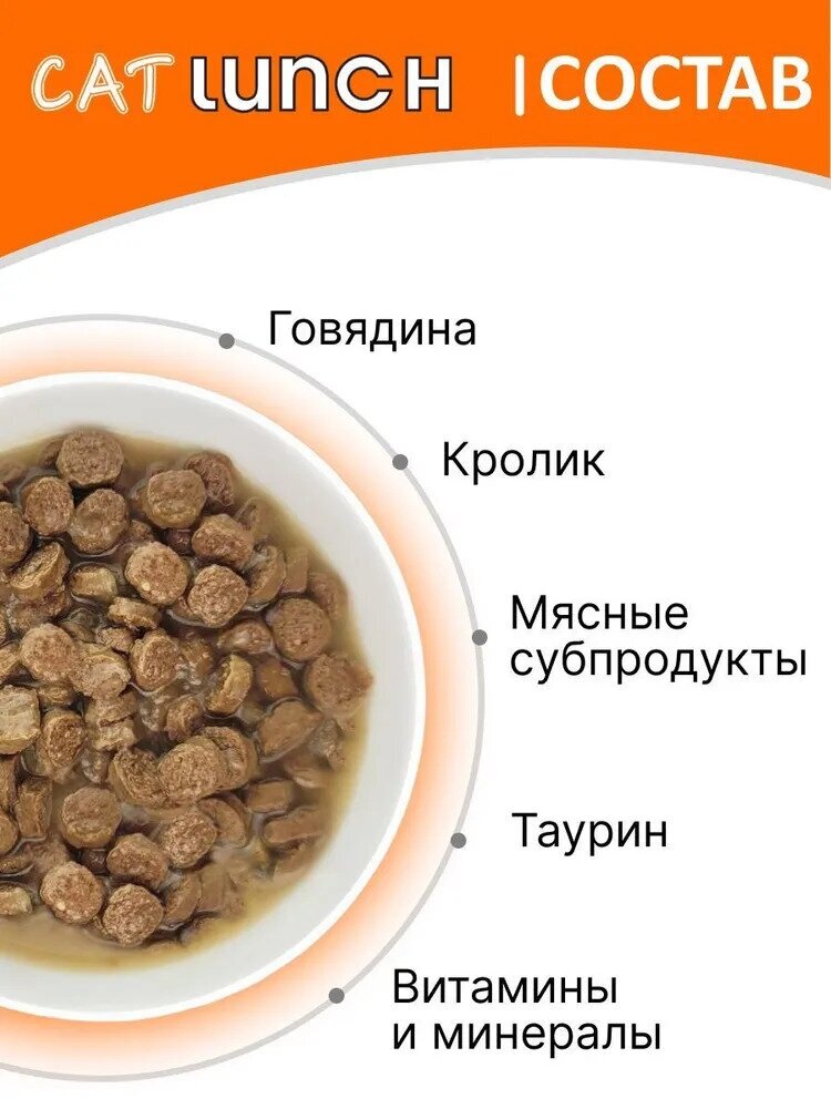 Корм влажный Cat Lunch пауч для кошек кусочки в желе Говядина и Кролик 85г , 24 шт