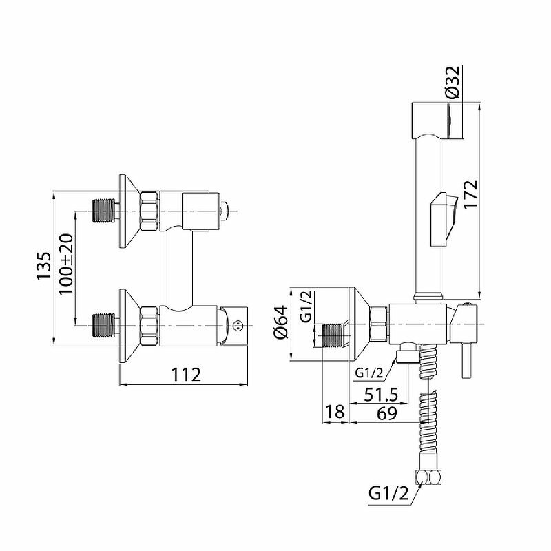 Смеситель с гигиеническим душем Bossini Paloma E57006 CR, хром