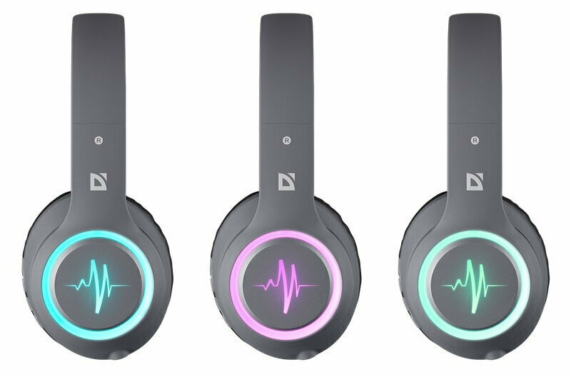 Наушники беспроводные Defender FreeMotion 571, Bluetooth 5.0, серый, LED подсветка