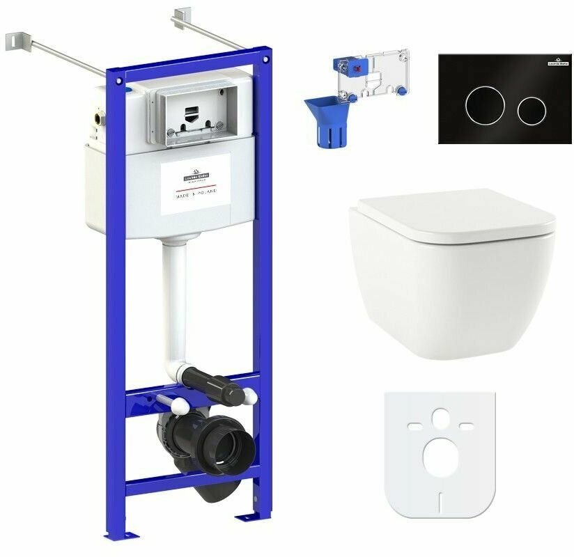 Подвесной унитаз комплект 7 в 1 Lavinia Boho One Rimless 87050166: унитаз, сиденье микролифт, инсталляция, кнопка, шумоизоляция, диспенсер