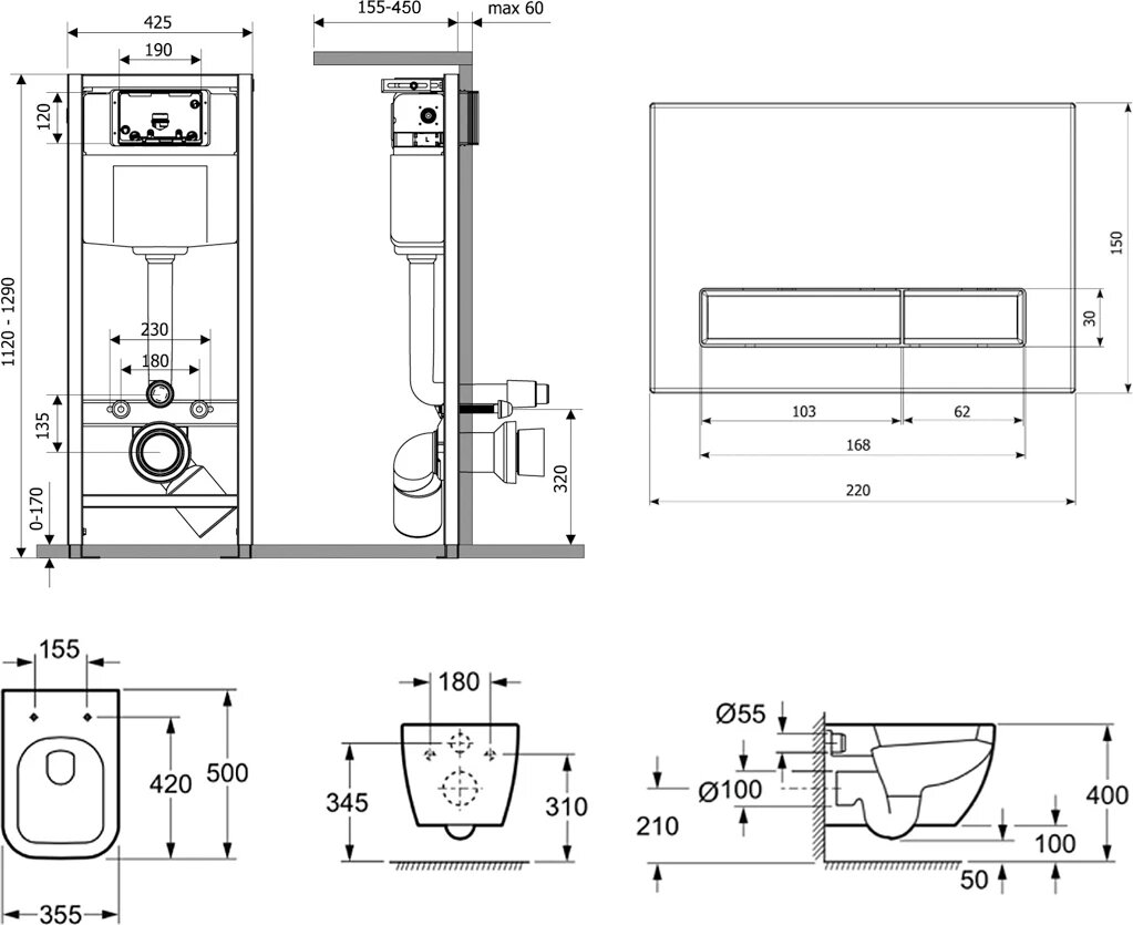 | Комплектация | бачок / звукоизоляционный комплект / инсталляция / монтажная рама / монтажный набор креплений / панель смыва / сиденье |