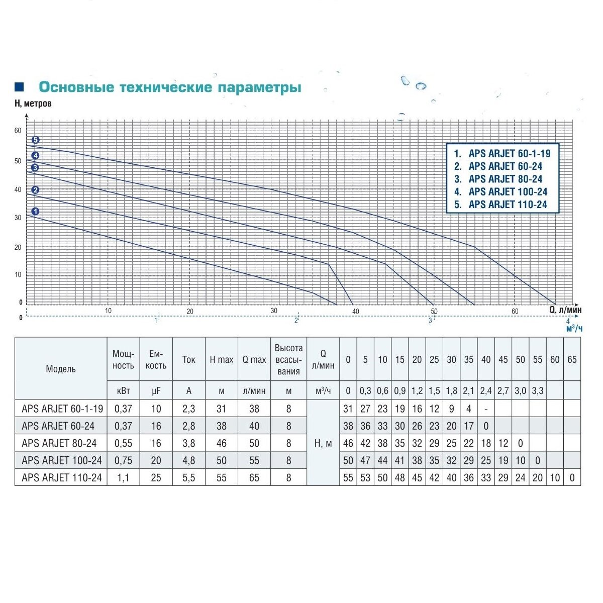 | Максимальный напор | 38 м |