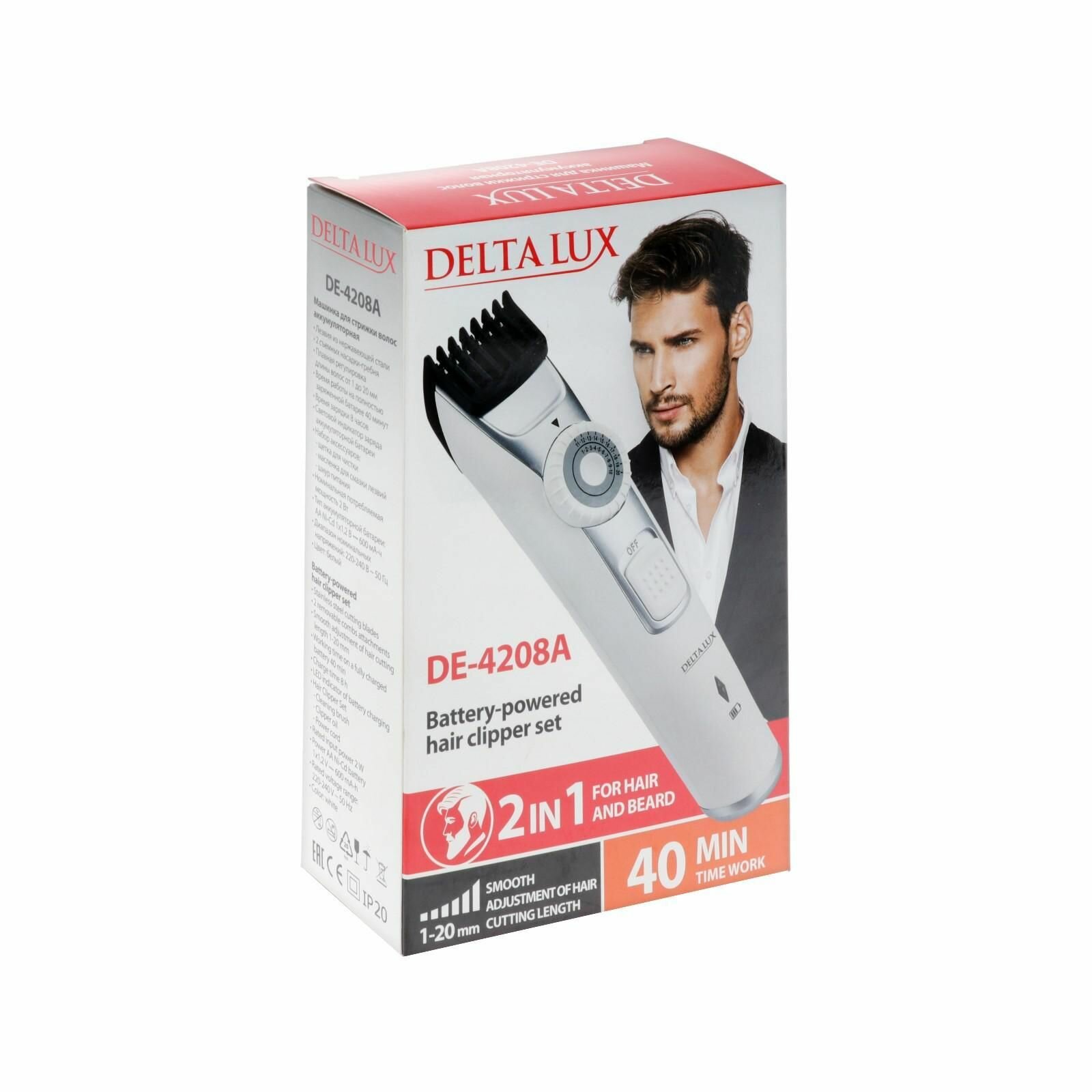 Машинка для стрижки 2 в 1 DELTA LUX DE-4208A для волос и бороды, регулировка 1-20мм , белый