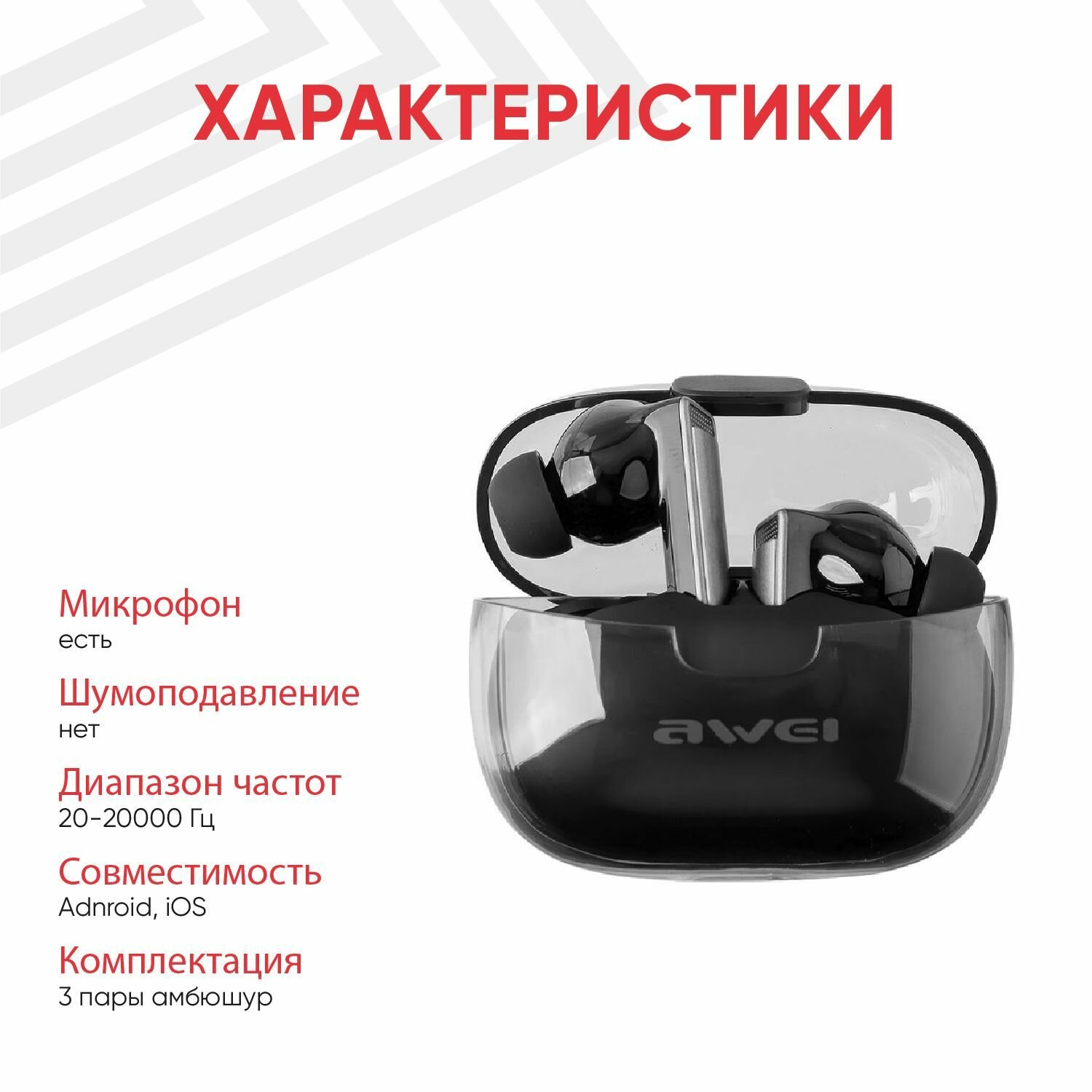 Наушники TWS Awei T52, Bluetooth 5.3, IPX6, Hi Fi Stereo, черный интересное: