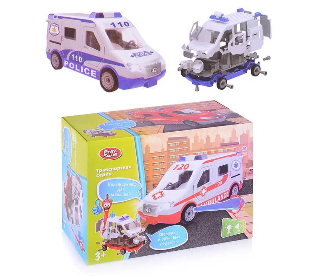 Конструктор - машина "Полиция фургон", винтовой конструктор машинка, инерция, свет + свет (собирайка), Play smart 1369