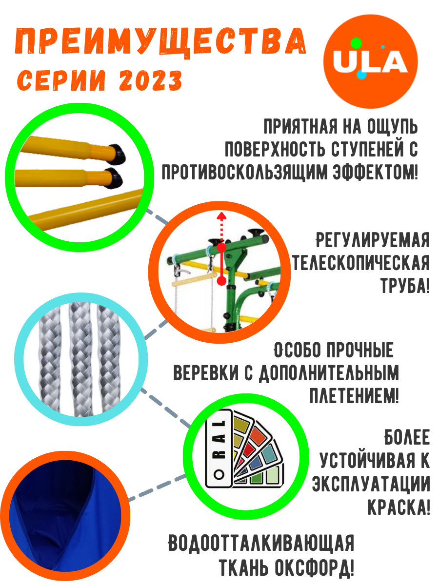 | Комплектация | веревочная лестница / гамак / гимнастические кольца / канат / турник |
